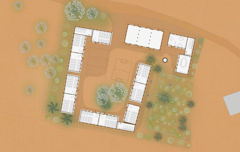 Le mandat de ce concours porte sur la réalisation d'une école à bas coût, utilisant des matériaux locaux.