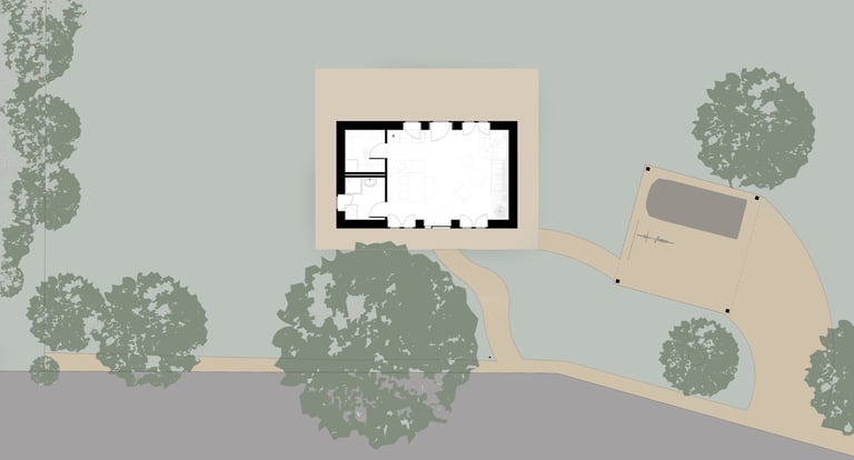 Au Sud de la France, dans la commune de Beauregard, la mandataire souhaitait une maison simple avec des matériaux les plus écologiques possibles. Elle voulait une maison qu'elle puisse construire le plus possible elle-même.